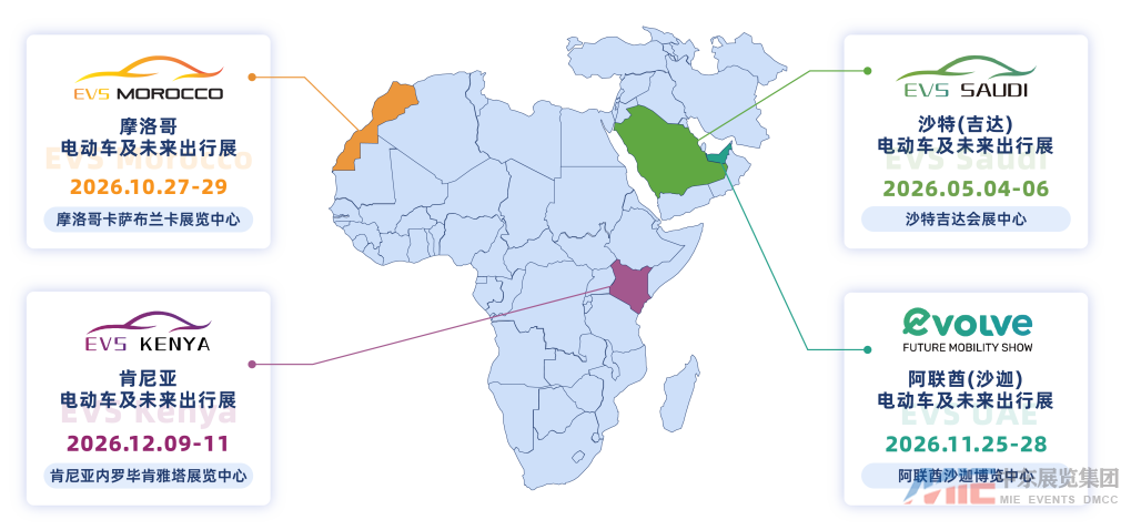 EVS未来出行展(EV & Mobility Show)是中东非洲地区聚焦未来出行方式的旗舰级盛会,全面覆盖电动化、智能化、网联化等核心领域。依托MIE集团25年市场深耕经验,EVS已在沙特、阿联酋、摩洛哥、肯尼亚成功举办,规划电动出行工具、能源基建、汽车后市场三大核心板块,覆盖完整产业链。